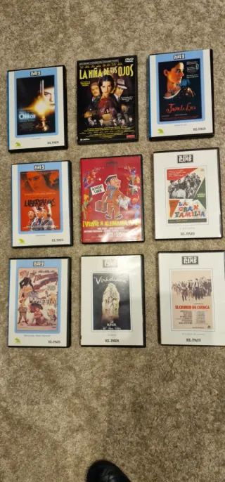 Colección de 9 películas de cine español en formato DVD. y sus correspondientes estuches originales - Los Otros - La Niña de tus Ojos - Juana la Loca - Libertarias - ¡Vente a Alemania, Pepe! - La Gran Familia - Viridiana - El Crimen de Cuenca - Bienvenido Mister Marshall
