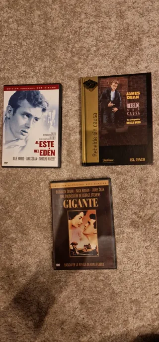 Colección de tres películas de James Dean en formato DVD. Están en estuches muy bien presentadas. La pelicula Rebelde sin causa, el estuche contiene un libro con la ficha técnica, la psinopsis y fotografías. Al Este del Edén esta en un estuche que contiene dos discos. La película Gigante, tambien esta en un un cartucho con dos discos. Están son las tres magnificas: - Al Este del Edén - Rebelde sin Causa - Gigante