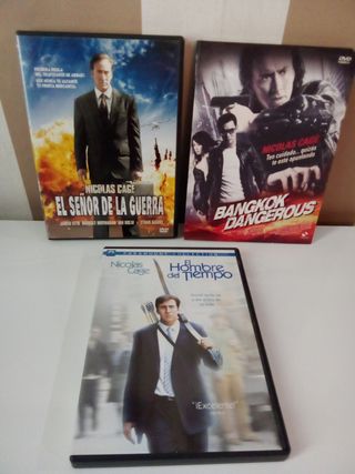 Lote de tres películas en formato DVD protagonizadas por Nicolas Cage. - El Señor de la Guerra - Bangkok Dangerous edición especial 2 discos - El Hombre del Tiempo Las 3 por 4€