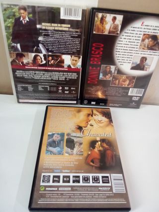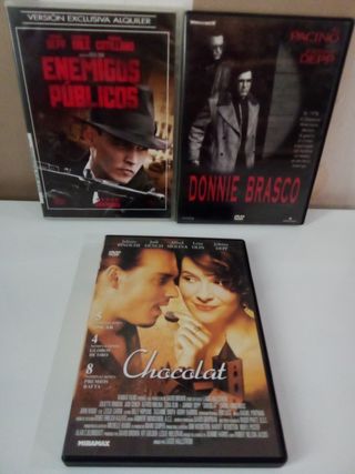 Lote de tres películas en formato DVD. - Enemigos Públicos con Christian Bale - Donnie Brasco con Al Pacino - Chocolat El pack de películas 3€