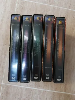 Completa colección de la serie Ángel en DVD, abarcando las cinco primeras temporadas. - Primera Temporada: Colección DVD, Episodios 1-22 (6 Discos) - Segunda Temporada: Colección DVD, Episodios 1-22 (6 Discos) - Tercera Temporada: Colección DVD, Episodios 1-22 (6 Discos) - Cuarta Temporada: Colección DVD, Episodios 1-22 (6 Discos) - Quinta Temporada: Colección DVD, Episodios 1-22 (6 Discos)