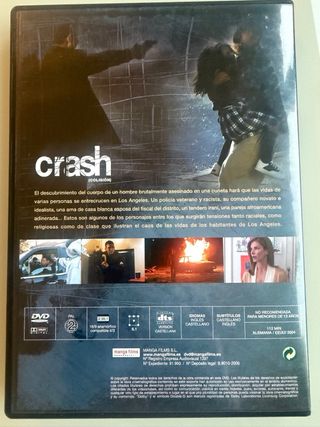 Película Crash (Colisión) en formato DVD. Ganadora de 3 Oscars. - Incluye Mejor Película, Mejor Guión Original y Mejor Montaje. - Protagonizada por Sandra Bullock, Don Cheadle, Matt Dillon y Brendan Fraser. - Dirigida por Paul Haggis. - A la velocidad de la vida, todos perdemos el control.