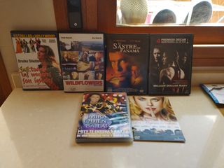 Se venden seis DVDs en buen estado. Ideales para una noche de cine en casa. - Incluyen títulos como *Estrellas de Hollywood*, *Wildflowers*, *Sastre de Panamá*, *Million Dollar Baby*, *Quien es Bala* y *Las mujeres son iguales*. - Géneros variados: drama, comedia, acción y romance. - Idiomas: inglés y español.