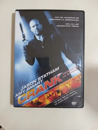 Película de acción Crank protagonizada por Jason Statham y Amy Smart. - Título original: Crank - Subtítulo: Veneno en la sangre - Incluye frases como Hay mil maneras de disparar la adrenalina y Lo que no te mata, te hace más fuerte.
