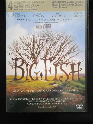Película Big Fish en formato DVD. - Nominaciones a los Globos de Oro y Oscars. - Dirigida por Tim Burton. - Protagonizada por Ewan McGregor, Albert Finney, Billy Crudup y Jessica Lange.
