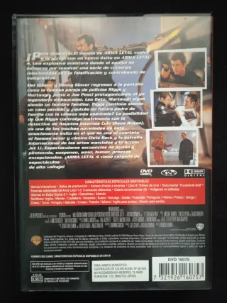 Película Arma Letal 4 en formato DVD. - Título original: Lethal Weapon 4 - Reparto: Mel Gibson, Danny Glover, Joe Pesci, Rene Russo, Chris Rock, Jet Li - Dirigida por Richard Donner