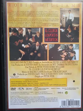 Película El Club de los Poetas Muertos en formato DVD. - Título original: Dead Poets Society. - Dirigida por Peter Weir. - Protagonizada por Robin Williams.