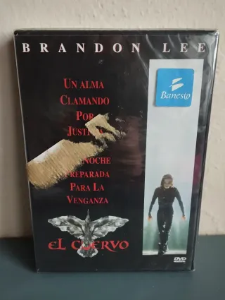 Película El Cuervo protagonizada por Brandon Lee en DVD. Precintada. El envoltorio tiene pegado un trozo de cartón y una pegatina. Hago envíos y también entrego en mano.