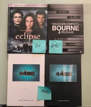 Pack de ediciones especiales de series y películas en DVD. Cada precio está marcado en la foto del anuncio. - Eclipse (Saga Crepúsculo) 8€ - Colección Bourne (4 películas) 7€ - The 4400 (Primera y Segunda Temporada) 13€