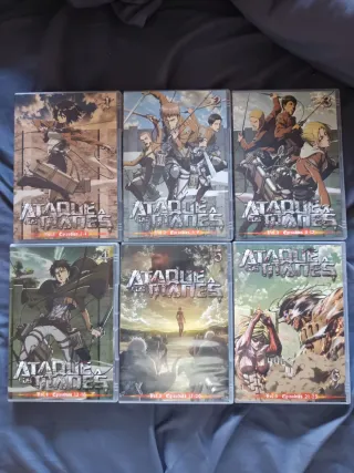 Colección de DVDs de la primera temporada de Ataque a los Titanes. - Vol. 1: Episodios 1-4 - Vol. 2: Episodios 5-8 - Vol. 3: Episodios 9-12 - Vol. 4: Episodios 13-16 - Vol. 5: Episodios 17-20 - Vol. 6: Episodios 21-25 Anime manga xbox pc nintendo ps5 amd nvidia intel samsung iphone apple bmw audi real madrid barcelona nike adidas megahouse tsume