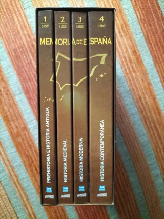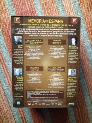 Colección completa "Memoria de España" (RTVE), 14 DVD originales, en estado impecable. Serie documental de gran calidad que recorre la Historia de España desde la Prehistoria hasta la actualidad, producida por TVE y dirigida por reconocidos historiadores universitarios. Contenido: Prehistoria e Historia Antigua Historia Medieval Historia Moderna Historia Contemporánea