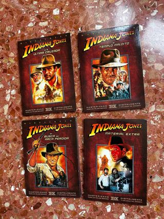 Colección de las películas de Indiana Jones en formato DVD. - Indiana Jones y la Última Cruzada - Indiana Jones y el Templo Maldito - Indiana Jones en Busca del Arca Perdida - Indiana Jones: Material Extra