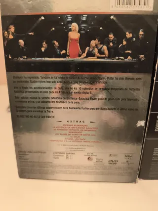 Battlestar Galáctica Temporadas 1 a 4+ Múltiples materiales extra Formato DVD 20 DISCOS en excelente estado Parte inferior izquierda de caja principal evidencia un deterioro de unos 2 cm Ver foto.