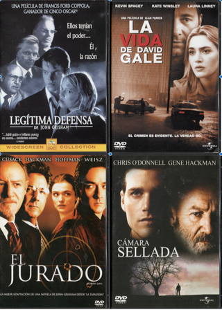 Lote de 4 DVDs de películas basadas en novelas de John Grisham. - Legítima Defensa (The Client) - El Jurado (The Runaway Jury) - La Vida de David Gale (The Life of David Gale) - Cámara Sellada (No Way Out)