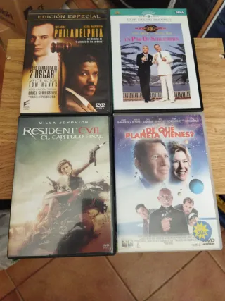 Conjunto de cuatro películas en formato DVD. - Philadelphia - Un Par De Seductores - Resident Evil: El Capítulo Final - ¿De Qué Planeta Vienes?