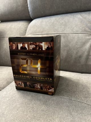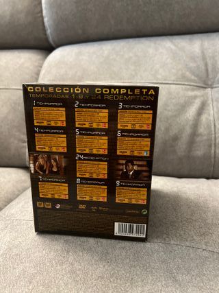 Pack completo de la serie 24, incluyendo todas las temporadas + Redemption. Tiene una pequeña rotura en cartón que se ve en la imagen, pero las carátulas están perfectas. Solo reproducido una vez. - Colección completa de las temporadas 1 a 9. - Incluye 24 Redemption. - Formato DVD. - Audio en español.