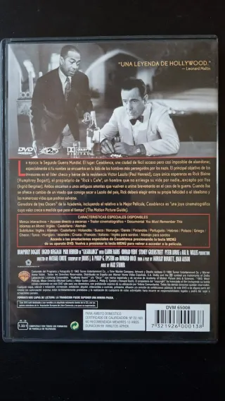 Película clásica Casablanca en formato DVD. El gran clásico con Humphrey Bogart e Ingrid Bergman