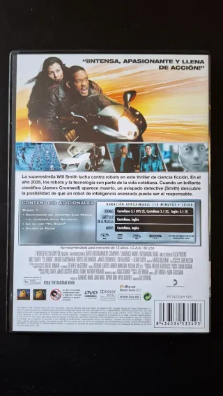 Película Yo, Robot en formato DVD. - Will Smith protagoniza esta aventura de ciencia ficción. - Incluye audio en inglés y español.