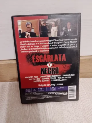 Película Escarlata y Negro en formato DVD. Protagonizada por Gregory Peck y Christopher Plummer.