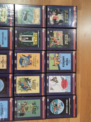 Completa colección de las aventuras de Tintín en formato DVD. - La Oreja Rota - Los Cigarros del Faraón - El Loto Azul - La Isla Negra - El Templo del Sol - El Cetro de Otókar - El Secreto del Unicornio - El Asunto Tornasol - Stock de Coque - Tintín en el Tíbet - Tintín América - Vuelo 714 para Sidney - Objetivo: La Luna - Aterrizaje en la Luna - Las Joyas de la Castafiore - El Cangrejo de las Pinzas de Oro - Las 7 Bolas de Cristal - Tintín y los Picaro