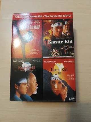 Pack de películas de la saga Karate Kid en formato DVD. Incluye las siguientes entregas: - Karate Kid (1984) - Karate Kid II: La Historia Continúa - Karate Kid III: Más allá de la Amistad - The Karate Kid (2010)