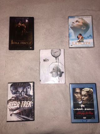 Lote de 5 películas en formato DVD. - Star Trek - La Playa - Sleepy Hollow - Luna Nueva - Saw IV