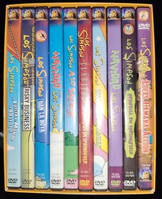 Colección de DVDs de Los Simpson. - Títulos incluidos: La Vuelta al Mundo en 80 Yuju!, Risky Business, Dan la Nota, Navidad con Los Simpson, A lo Salvaje, Clásicos, Besondencias, Pesadilla en Springfield, Navidad con Los Simpson, Luces, Cámara, Acción. - Idioma: Español.