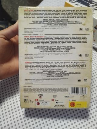 Colección de 3 películas de Rambo en DVD. Las películas incluidas son: First Blood, Rambo II y Rambo III. Están en buen estado y listas para disfrutar. - Incluye las tres películas de la saga. - Formato DVD. - En inglés.