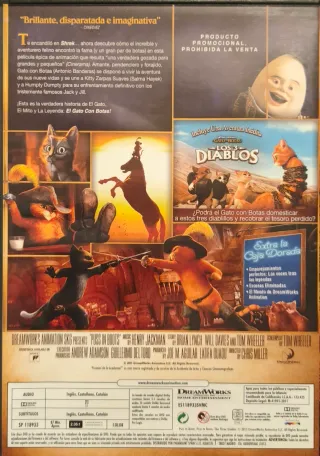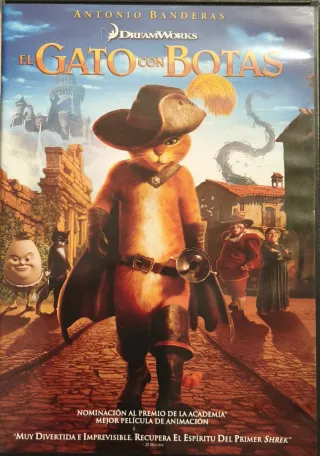 Película El Gato con Botas en formato DVD. - Incluye la voz de Antonio Banderas. - Nominada al Premio de la Academia a Mejor Película de Animación. - Calificada como Muy divertida e imprevisible por 20 Minutos.