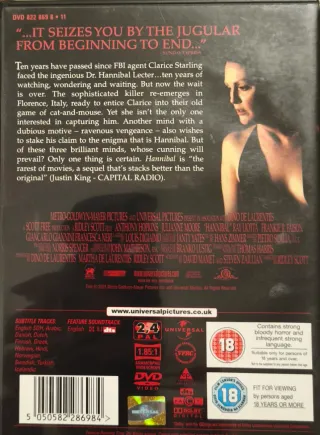Película Hannibal en formato DVD. - Protagonizada por Anthony Hopkins y Julianne Moore. - Dirigida por Ridley Scott.