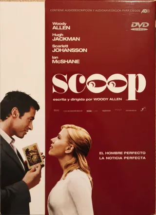 Película Scoop escrita y dirigida por Woody Allen. - Incluye audiodescripción y audionavegación para ciegos. - Con Woody Allen, Hugh Jackman, Scarlett Johansson e Ian McShane.