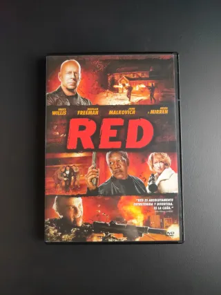 Película en formato DVD de la cinta RED. - Protagonizada por Bruce Willis, Morgan Freeman, John Malkovich y Helen Mirren. - Trama de acción y comedia. - Incluye audio en español.