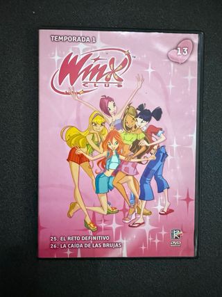 DVD de la primera temporada de Winx Club. - Incluye los episodios El Reto Definitivo y La Caída de las Brujas. - Portada con las protagonistas. - Logo de Rainbow DVD.