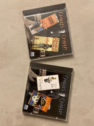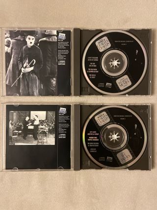 Colección de 2 CDs con música de las películas de Charles Chaplin: Volumen 1: The silent movies. Volumen 2: The talkies. Incluye la música de las películas La quimera del oro (Gold rush), El circo (The Circus), Luces de la ciudad (City lights), Tiempos modernos (Modern times), El gran dictador (The great dictator) y Candilejas (Limelights); así como la de dos cortos: Un día de juerga (A day’s pleasure) y Día de paga (Pay day). En perfecto estado.