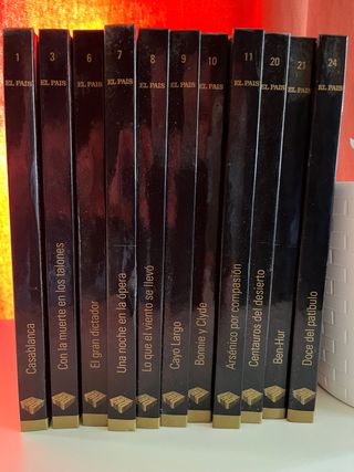 Cine de Oro. Colección Películas inolvidables EL PAIS. Juntos e individual. 26 Títulos: - Casablanca - Doctor Zhivago - Con la muerte en los talones - Mogambo - Tener y no tener - El gran dictador - Un noche en la opera de los Hermanos Marx - Lo que el viento se llevó - Cayo Largo - Bonnie y Clyde - Esplendor en la hierba - Extraños en un tren - Un americano en París - El Halcón Maltés - La quimera del oro - My Fair Lady - El sueño eterno - Centauros del desierto - Ben-Hur - Cantando bajo la lluvia - Un día en las carreras - La costilla de Adán - Días de vino y rosas - Tiempos modernos - Robin de los bosques - Siete novias para siete hermanos