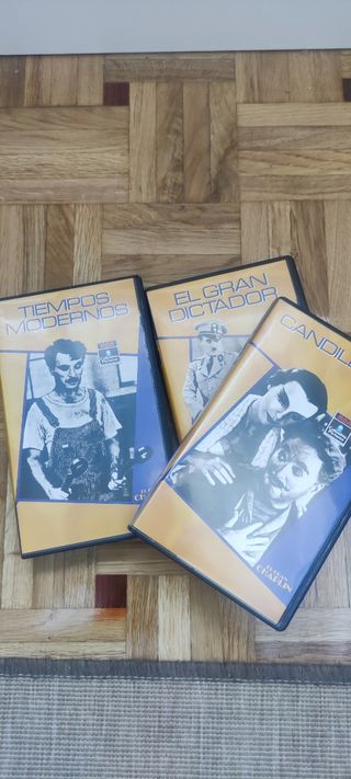 Colección de películas en VHS de Chaplin. Incluye "Tiempos modernos" "El gran dictador" y "Candilejas"