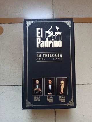 Espectacular caja conteniendo la trilogía completa de El Padrino en VHS. Las cintas se encuentran en una caja negra elegante. - Incluye las tres películas: El Padrino, El Padrino Parte II y El Padrino Parte III. - Edición especial con imágenes de los protagonistas.