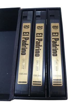 Edición especial limitada de El Padrino en formato VHS. - Contiene tres videocassettes de producción especial. - Incluye casi siete horas de duración. - Relata la historia de la familia Corleone de 1901 a 1959. - Enriquecido con más de 30 escenas adicionales inéditas. - Incluye un lujoso libreto ilustrado sobre el rodaje.