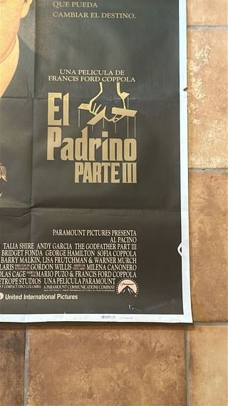 Cartel de cine original de la película (1990) de Francis Ford Coppola. El poster se encuentra en buen estado, tal y como se ve en las imágenes. Tiene una rotura.