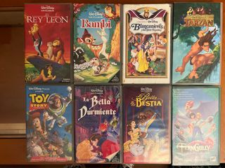Películas clásicas Disney en VHS, idioma español. El lote incluye 5 cintas: El Rey León, Anastasia, Pocahontas 2, La bella durmiente y Toy story. Las cintas se encuentran en buen estado, listas para disfrutar. - El Rey León (versión española). - Anastasia (versión española). - Pocahontas 2: Viaje a un Nuevo Mundo (versión española). La bella durmiente y Toy story, sin estuche ni carátula.