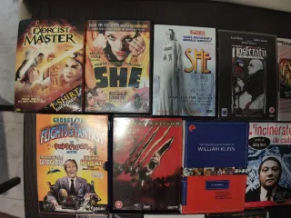 - She Kino video 2,5€ - She 2d 3€ - Exorcist Master con camiseta precin 3,5€ - What's the Matter with Helen ? Whoever slew auntie roo Midnite Movies 3,8€ - Wang yu One armed boxer 5€ - Gorgo 6€ - People Sunday libr 7€ - Nosferatu the vampyre 2d 8,95€ - Made in caro cortometrajes 9€ - The Howling Aullidos Special edit 2d 9,9€ - L'incinerateur de cadavres libr 13€ - Maya Deren experimental films 14€ - The mask 3D cn gafas 14€ - 13 Ghosts 3D cn visor 14€ - The Dungeon of Harrow / Death by invitation 17€ - Esa rubia es mía 18€ - The delorious fictions of William Klein 3disc 23€ - George Pal Flights of fantasy the Puppetoon 3disc 27€