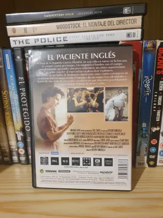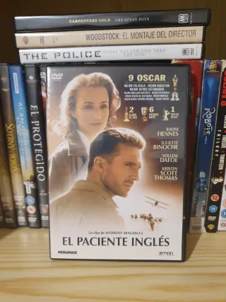 Película El Paciente Inglés en formato DVD. Ganadora de 9 premios Oscar. - Película de drama, romance y guerra. - Incluye audio en inglés y español. De 1 a 5 Dvd : 2€ De 6 a 12 Dvd :1,5€ De 13 a 20 Dvd : 1€ Más de 20 Dvd : 0.8€