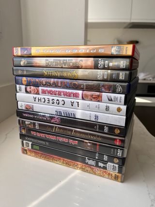 Vendo DVD todos juntos (60€) o por separado (6€ cada una) en buenas condiciones. - Spider-man 2 - Fama, la película original - The Rocky Horror Picture Show - La cosecha - La Historia Interminable (Edición especial de coleccionista) - Juno - La vida secreta de las abejas - El francotirador - MAMMA MIA! - Dinosaurio - El señor de los anillos: la comunidad del anillo - El señor de los anillos: las dos torres