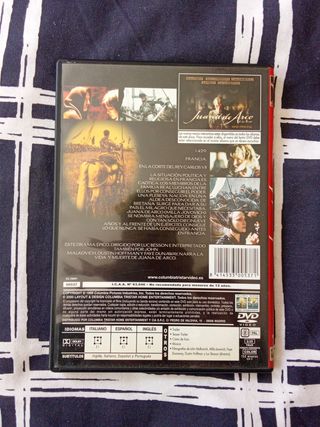 Película original en DVD. Idiomas: español, ingles e italiano. Película francesa histórica-dramática de 1999 coescrita y dirigida por Luc Besson. Protagonizada por Milla Jovovich, Tchéky Karyo, Vincent Cassel, John Malkovich, Faye Dunaway y Dustin Hoffman. Música fue compuesta por Eric Serra. La película cuenta la historia de Juana de Arco, la famosa heroína de guerra del siglo XV y mártir religioso. Hago entregas en metro Puerta del Ángel y hago envíos por Wallapop!!!
