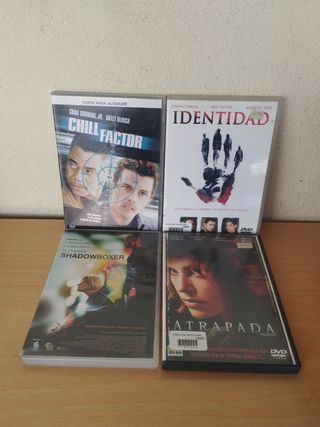 21 dvd ,35 euros por los 21 dvd Suelos 3 euros la unidad, conspiración en la Red,el secreto de los hermanos Grimm,end Game, laberinto envenenado,chill factor Identidad,shadowboxer,atrapada,Jumper El jurado,la verdad sobre Charlie,el quinto poder,destino caballero,el equipo a,la otra Cara del crimen,la sombra del reino,caza Al terrorista,los juegos del hambre ,Sinsajo Parte 1,transiberiano,en el valle de elah Animal Factory