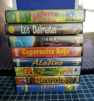 LOTE 8 CINTAS VHS ORIGINALES EN ESPAÑOL. INCLUYE: 1. HEIDI 2. PINOCHO 3. SIMBA (EL REY LEÓN) 4. ALADINO 5. CAPERUCITA ROJA 6. LA BELLA DURMIENTE 7. LOS DÁLMATAS 8. EL OSITO PANDA. SE ENCUENTRAN EN BUEN ESTADO (VER FOTOS) Y PERFECTO FUNCIONAMIENTO. HAGO ENVÍOS O ENTREGO EN MANO EN MADRID. SI TIENES ALGUNA DUDA O CONSULTA ESCRÍBEME Y CONTESTO