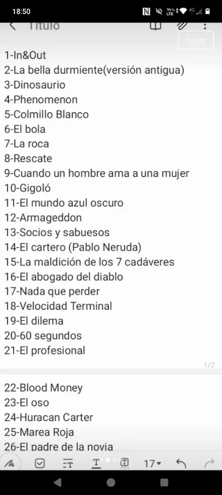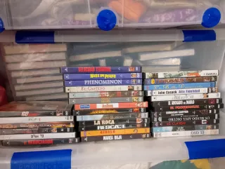 Colección de películas en formato DVD con una variedad de géneros. - Velocidad Terminal - Nada que Perder - Phenomenon - El Cartero - Socios y Sabuesos - Robinsones - Armageddon - Colmillo Blanco - La Roca - Rescate - Gigolo - Marea Roja - Tiempo de Matar - Dinosaurio - La Bella Durmiente - Alta Fidelidad - El Padre de la Novia - El Abogado del Diablo - El Profesional - Huracán Carter - Un Mundo Azul Oscuro - El Cuervo - Seis Días, Siete Noches - El Oso - Go - In & Out - La Maldición de los 7 Cadáveres - Al Pacino Russell Crowe - El Bola - El Negociador
