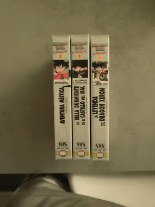 Lote de 3 videocasetes de las películas de Dragon Ball. - La Leyenda del Dragón Xeron - La Bella Durmiente en el Castillo del Mal - Aventura Mística - Incluyen audio en japonés y español.