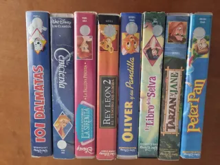 Colección de 8 películas clásicas de Disney en formato VHS. - 101 Dálmatas - La Cenicienta - La Sirenita - El Rey León 2: El Tesoro de Simba - Oliver y su Pandilla - El Libro de la Selva - Tarzán y Jane - Peter Pan