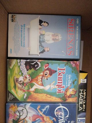Escucho ofertas **Lote de cinco películas VHS para niños y familias. Las cintas están en buen estado y listas para disfrutar. - Incluye las películas: Sirenitas, Bambi, Cenicienta, Los Picapiedra y otra película familiar. - Formato VHS. - Idioma español.